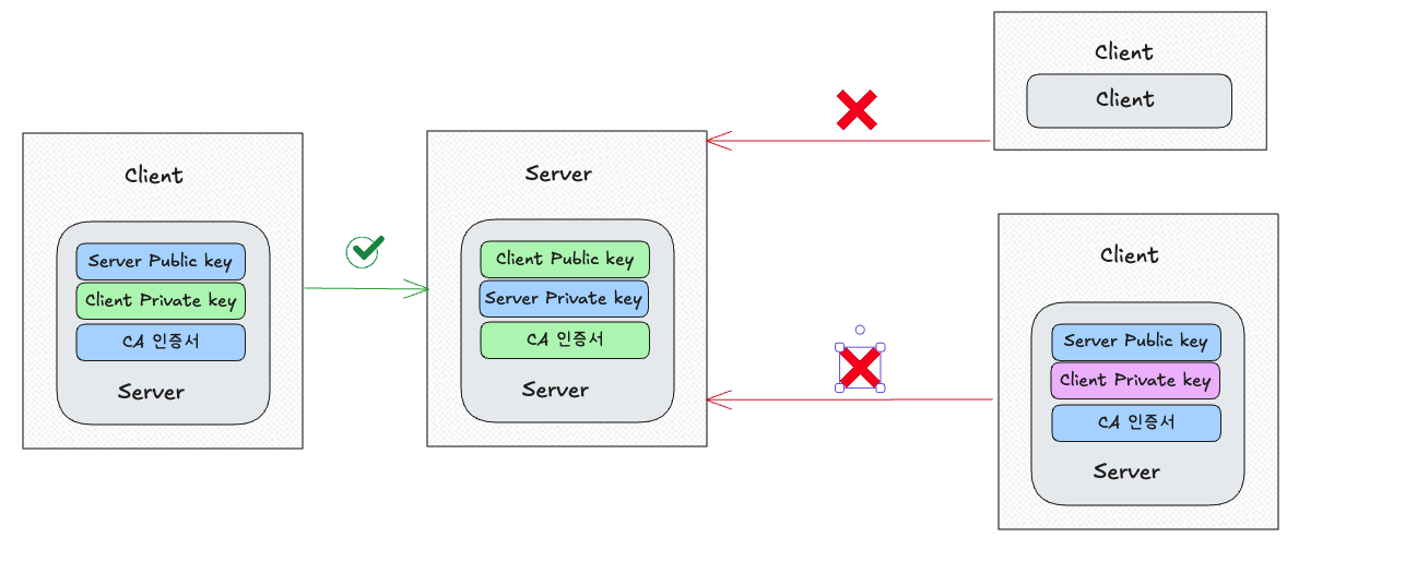 클라이언트가 자신의 인증서를 서버에 제공하고,