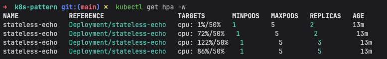 kubectl autoscale deployment stateless-echo --cpu-percent=50 --min=1 --max=5