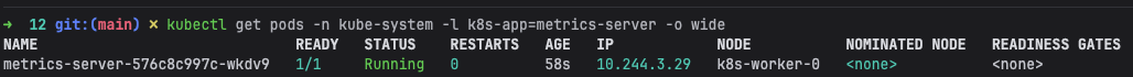 kubectl get pods -n kube-system -l k8s-app=metrics-server -o wide