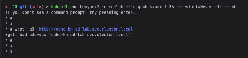 wget: bad address 'echo-kn.sd-lab.svc.cluster.local'