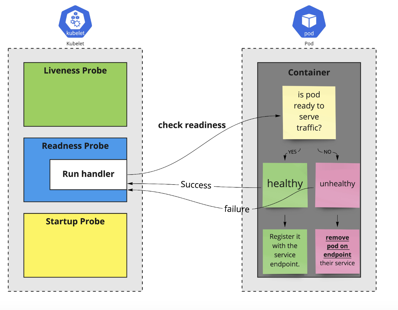| 2 | Readiness Probe | 트래픽 수신 준비 여부 판단, Service Endpoint 등록/제거 |
