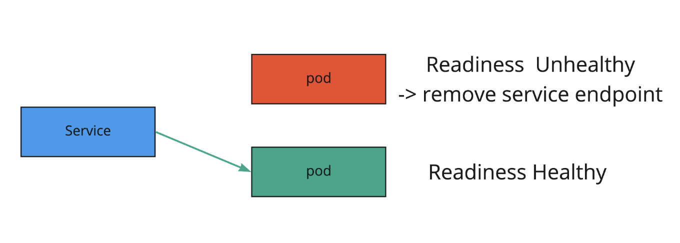 | ReadinessProbe | 트래픽 수신 준비 여부 확인 | 실행 후 지속 | 엔드포인트 제거 | 초기화 후 트래픽 시작, DB 오류 시 트래픽 차단 | 재시작 없음 |