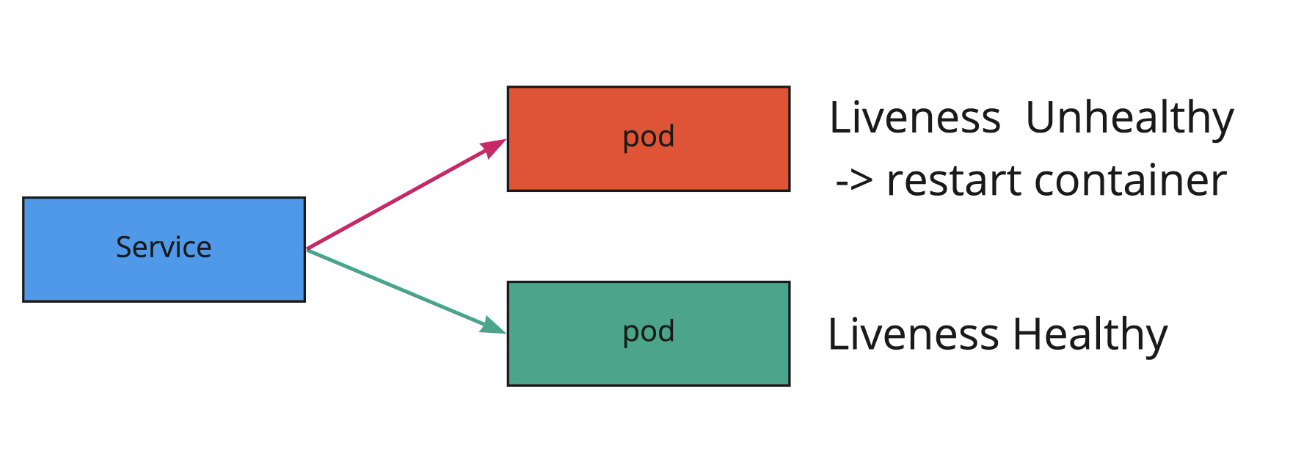 | LivenessProbe | 앱이 살아 있는지 확인 | 실행 중 지속 | 재시작 | Deadlock, 장시간 응답 없음 | 응답은 있으나 기능이 멈춘 경우도 감지 |
