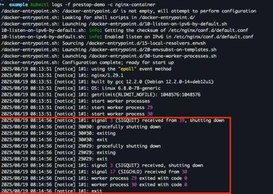 kubectl logs -f prestop-demo -c nginx-containerkubectl delete pod prestop-demo