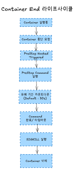 | 종료 단계 작업 | preStop 명령어 | 상응하는 기능이 아직 없음 |