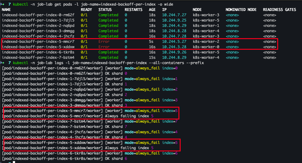 kubectl -n job-lab logs -l job-name=indexed-backoff-per-index --all-containers --prefix