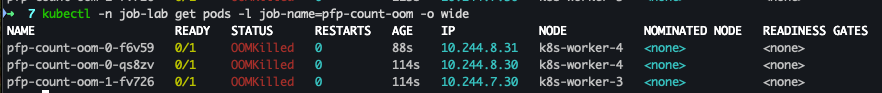 kubectl get pods -n job-lab -l job-name=pfp-count-oom -o wide