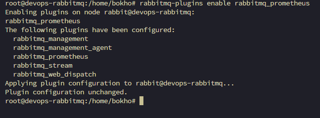 위의 명령어을 통해 RabbitMQ 버전이 3.8.0 버전보다 높은 것을 확인하였으므로 rabbitmq_prometheus 설치합니다.