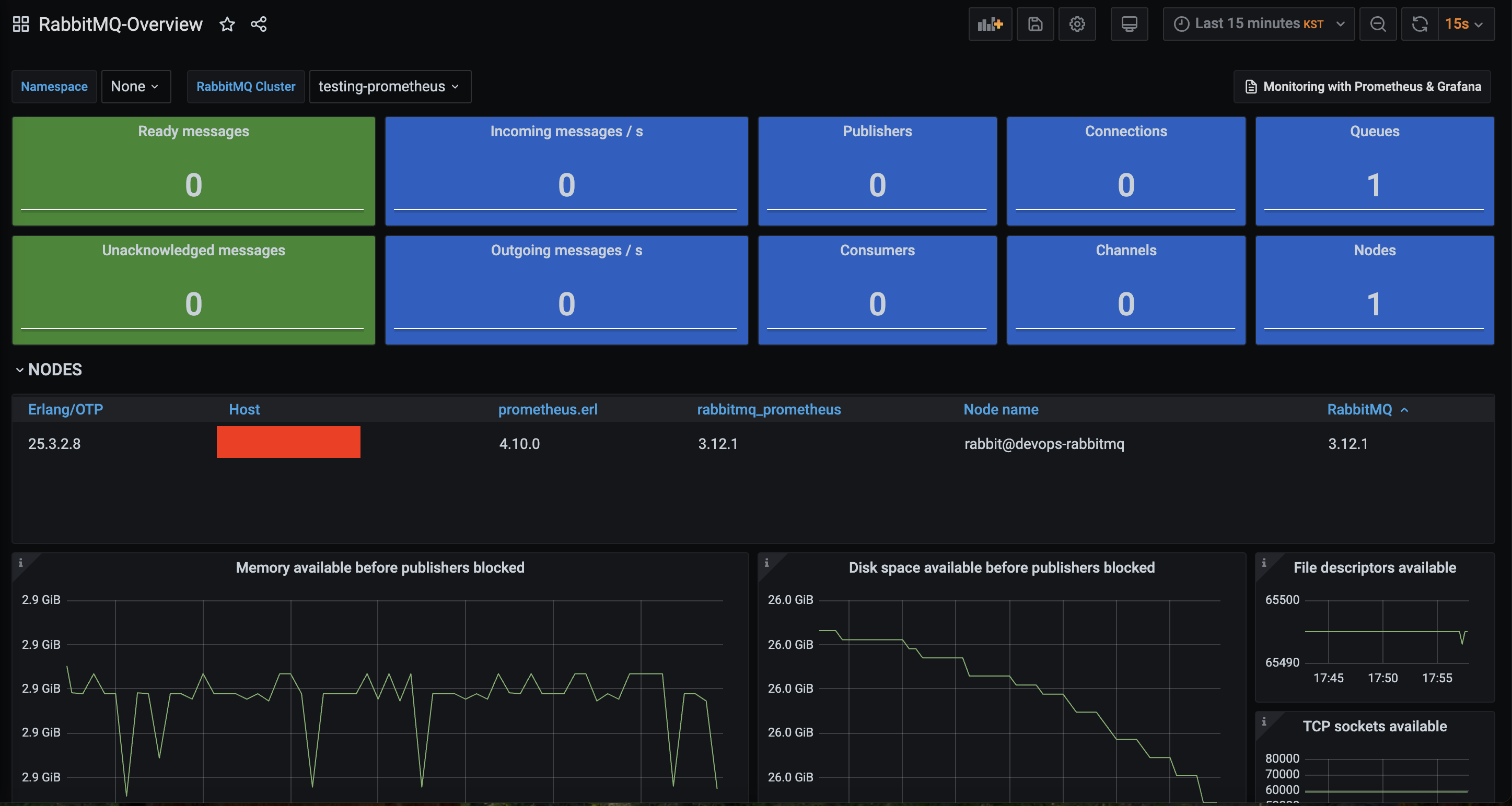 RabbitMQ Prometheus Plugin, Prometheus 연동 작업이 끝났습니다.