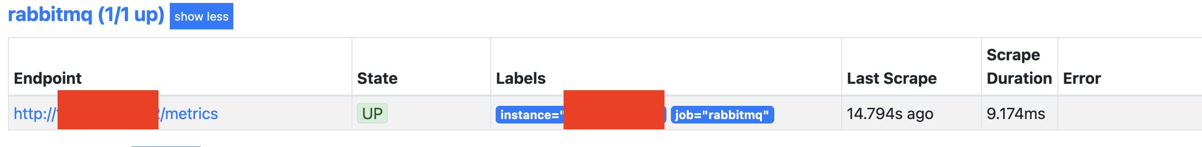 또한 ‘rabbitmq_prometheus’ 의 기본 포트는 15692 이므로 해당 포트 LISTEN 인지 확인이 필요합니다.