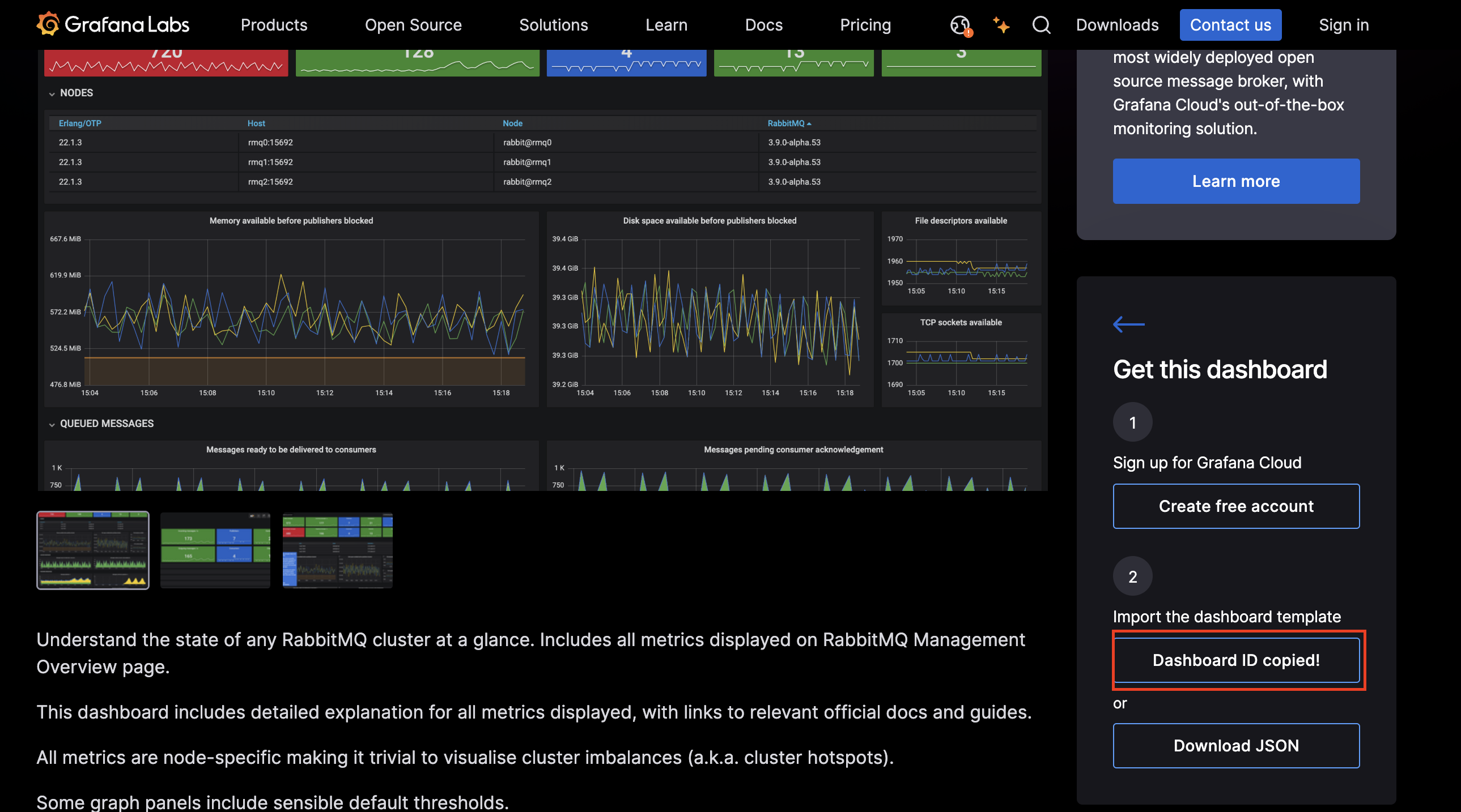 자신에 맞는 RabbitMQ 대시보드를 찾아서 적용하시면 됩니다.