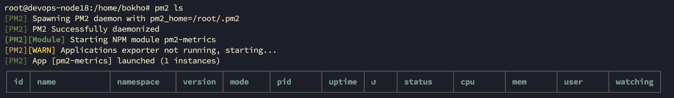 가장 먼저 pm2가 설치 되어있는지 여부 부터 확인이 필요합니다.