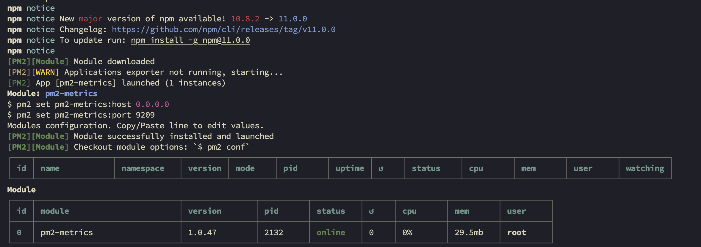 pm2가 설치 되었다면 Metrics 를 수집할 수 있도록 설치가 필요합니다.