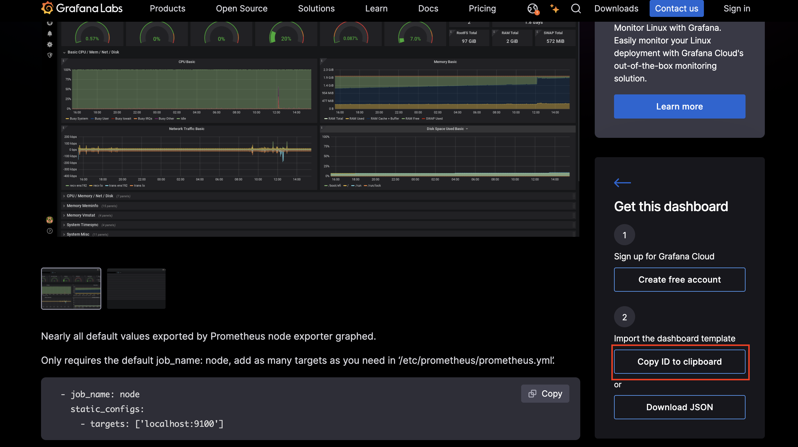 다른 대시보드와 마찬가지로 직접 구현할 수도 있으나 아래 사이트 들어가서 VM Exporter 관련 테마를 검색한 후 나에게 맞는 테마를 선택하였습니다.
