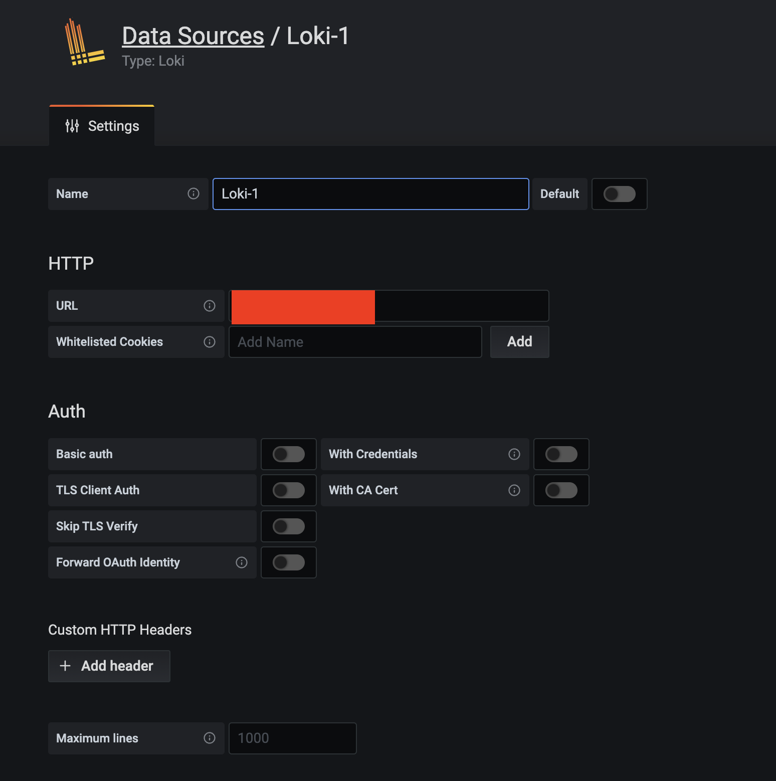 대시보드를 세팅하기 앞서 Loki 서버와 Grafana 연결이 필요합니다.