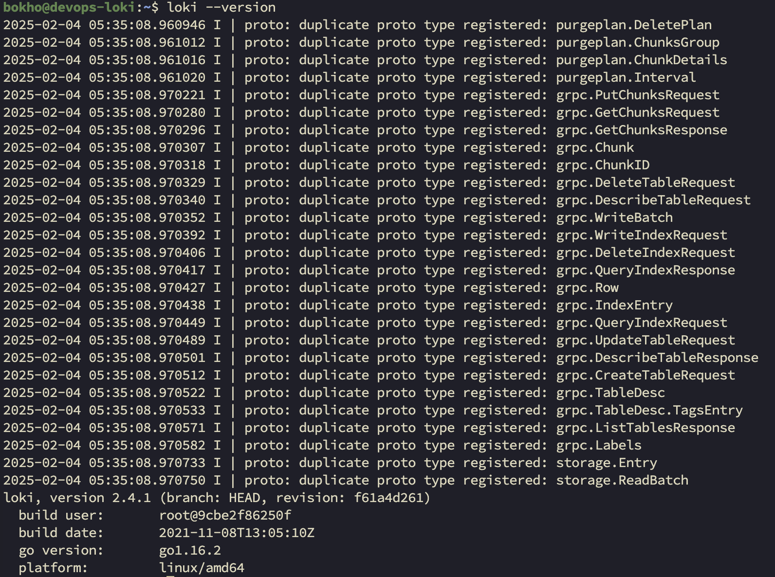 가장 마지막 명령어를 이용하면 다음과 같이 Loki version이 조회가 됩니다.