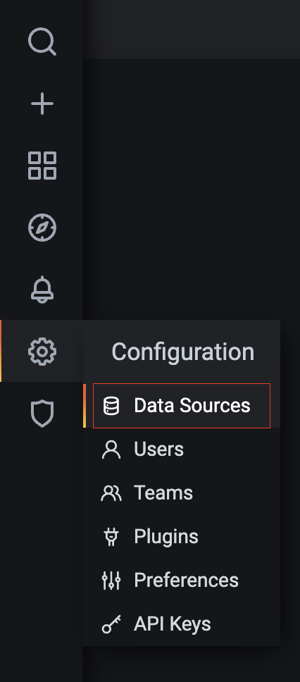 왼쪽 매뉴에 Configuration > Data Sources 를 클릭합니다.