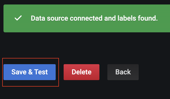 ‘Save & Test’ 버튼을 클릭하여 저장한다.