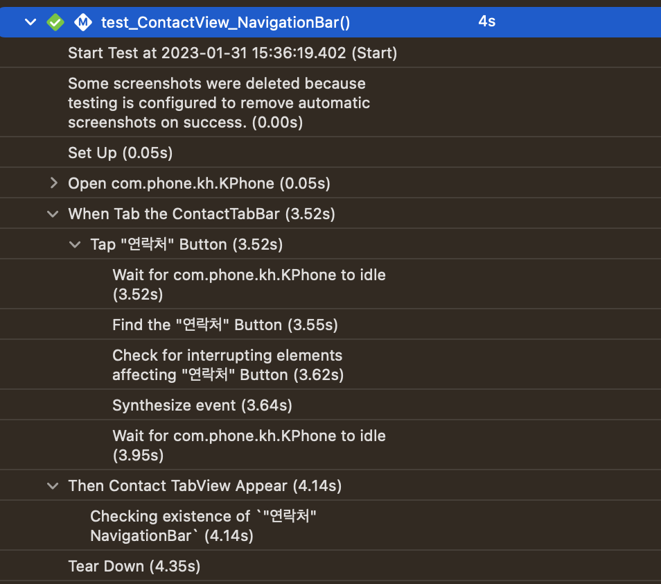error가 존재하면 이후 테스트는 자체적으로 skip되고 바로 tearDownWithError가 호출됨.
