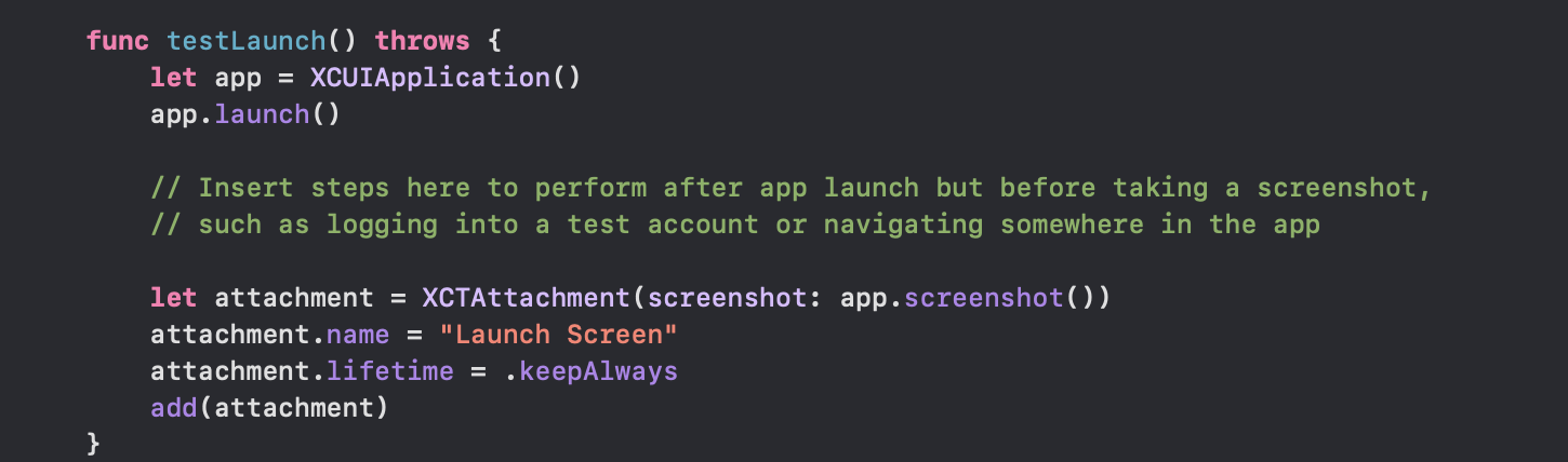 let attachment = XCTAttachment(screenshot: screenshot)
