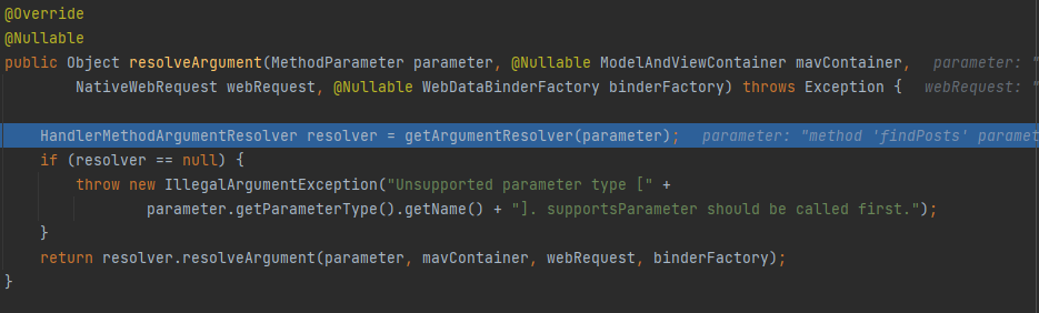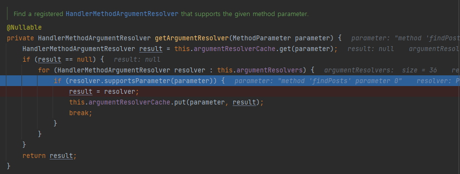 핸들러 어댑터는 ArgumentResolver의 supportsParameter()를 호출해서