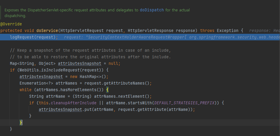 DispatcherServlet의 doService()가 호출된다.