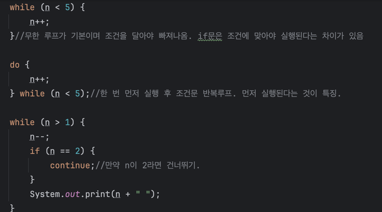 반복문의 종류에 따라 수행방식이 달라짐