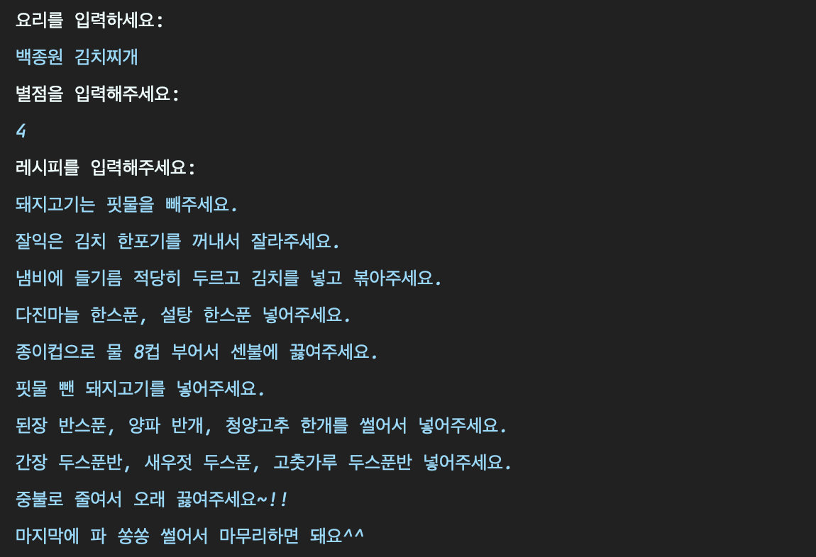 엔터를 한 번 입력하면 한 줄 끝. 벡스페이스가 듣는 것 같아 해봤는데 안 들음.