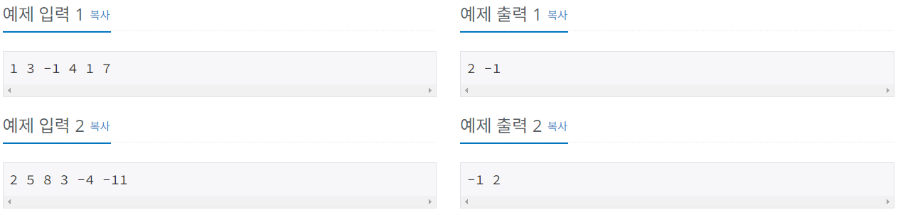 a,b,c,d,e,f = map(int, input().split())