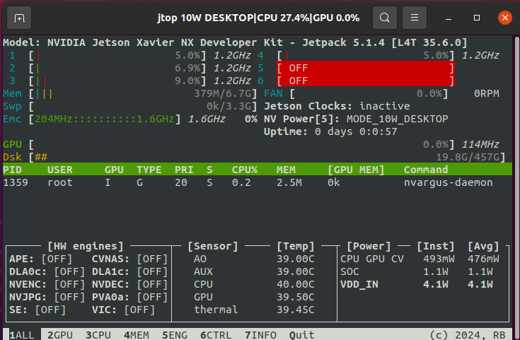 jetson 시리즈의 유구한 전통입니다. 현재 시스템의 상태를 볼 수 있어요!