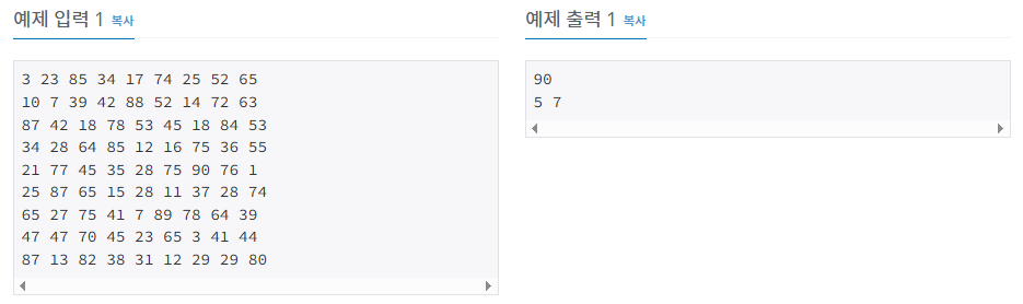 9x9 행렬이 주어지고, 요소 중 최댓값이 몇이고, 몇 행 몇 열인지 출력하는 문제이다.