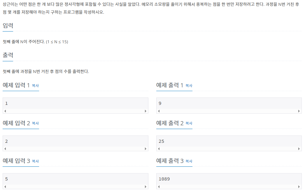 N번째 반복땐 몇개의 점이 나올거냐는걸 묻는 수학 로직 문제이다.