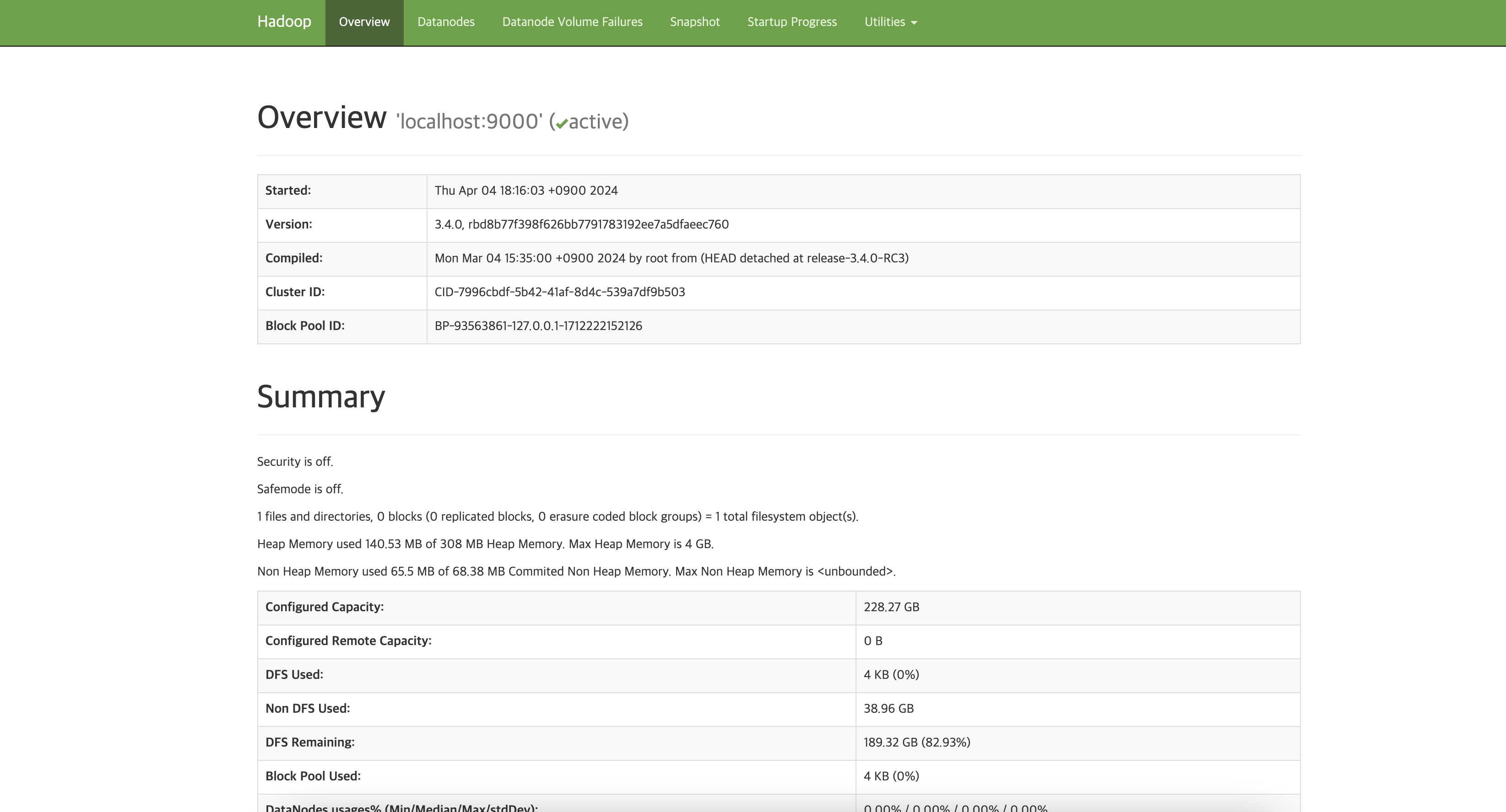 localhost:9870 에 들어가면 각각 화면을 볼 수 있다.