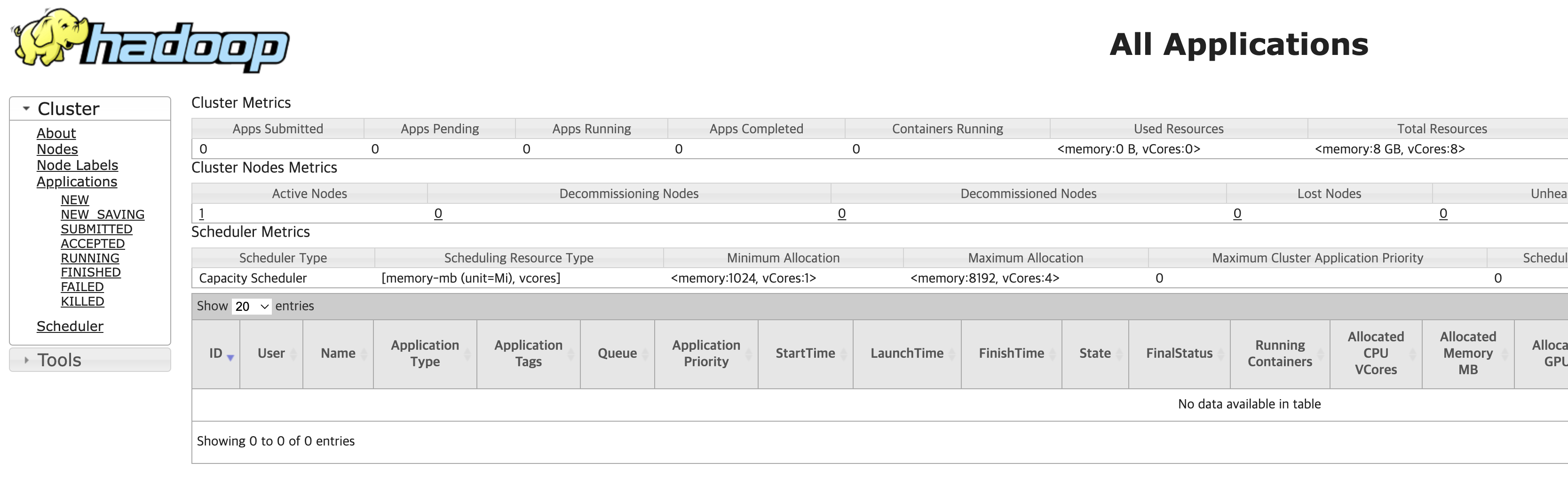 일단 기본적인 하둡 구성만 해보았고 다음엔 간단한 데이터를 직접 넣어보려고 한다