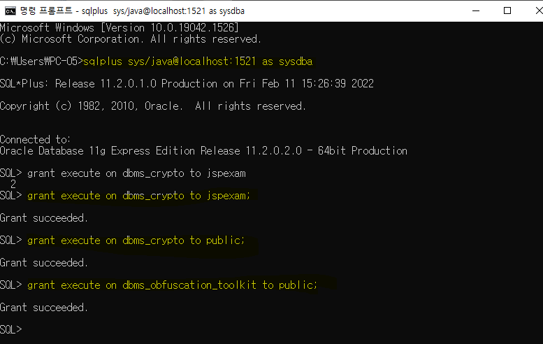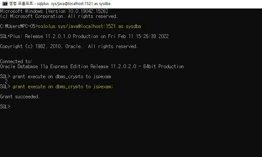 AND PWD = PKG_CRYPTO.ENCRYPT('1234');
