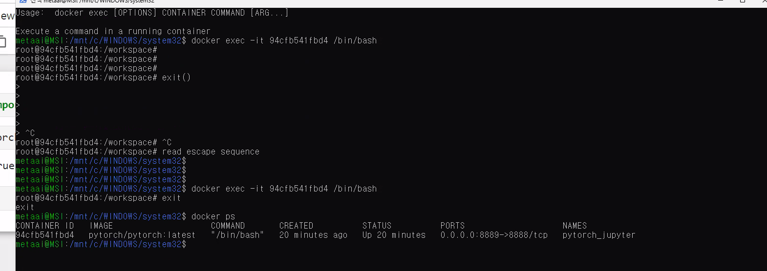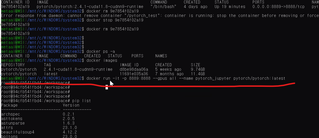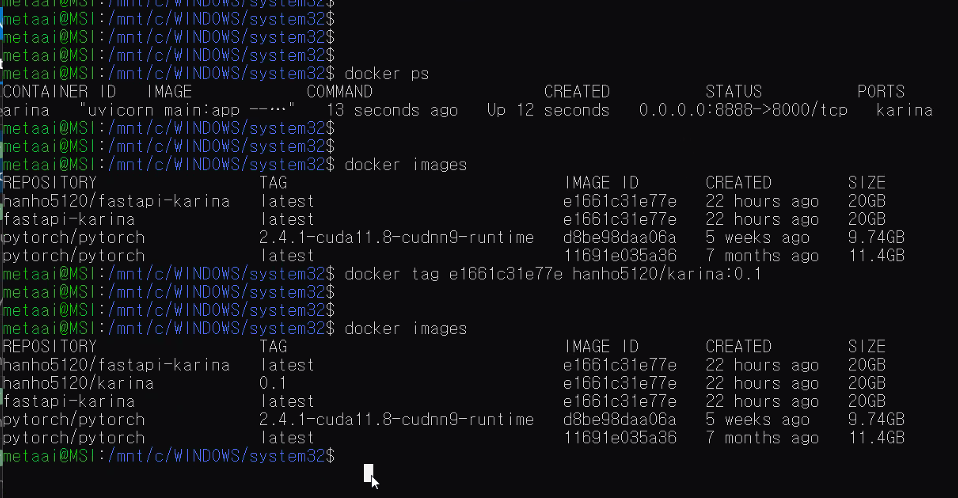 도커이미지만 있다해서 실행이 되지않는다. 저 명령어로 실행을 시켜준다. 그럼 우분트에 올라가게 됀다.