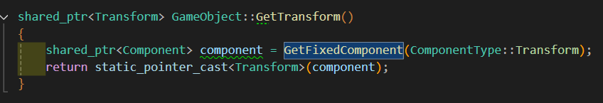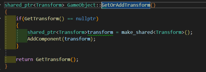 - Transform은 반드시 하나가 존재해야 하므로 Transform을 얻어오거나, 새로 만들어주는 함수를 구현해준다