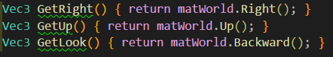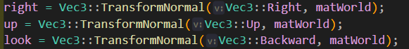 - 이처럼 matWorld에 Right, Up, Backward를 가져오는 함수가 존재하므로 이러한 방법도 있단걸 알아두자