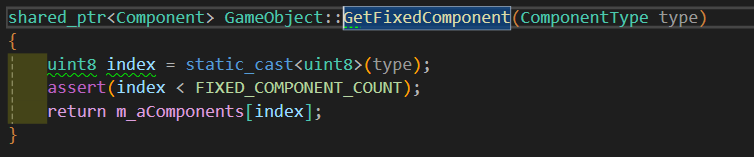 - 이때 Component.h에서 FIXED_COMPONENT_COUNT 를 enum으로 만들었으므로 ComponentType의 갯수만큼 배열을 만들어 사용할 수 있게 한다