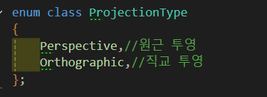 - enum class로 ProjectionType을 정수로 나타낼 수 있게 만들어준다