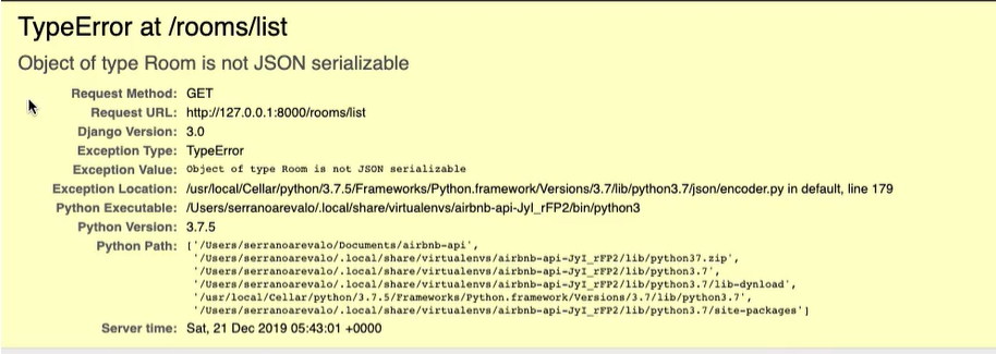 json_rooms=json.dumps(rooms) #dumps는 객체를 json format으로 나열해준다. response=HttpResponse(json_rooms)