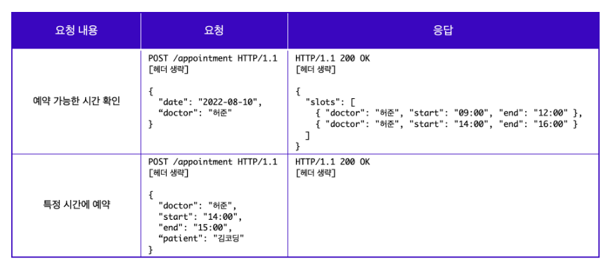 요청하는 리소스가 무엇이냐에 따라 엔드포인트도 각기 다르다(/appointment, /slots)