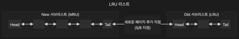 LRU 리스트는 엄밀하게는 LRU와 MRU 리스트가 결합된 형태라고 보면 된다. (변형된 LRU 리스트)