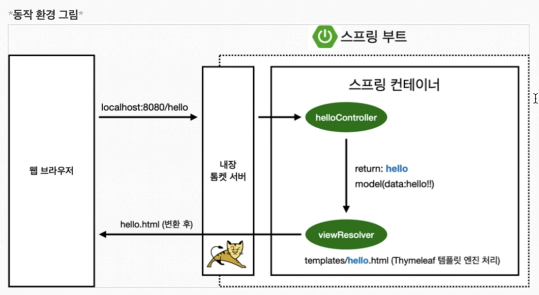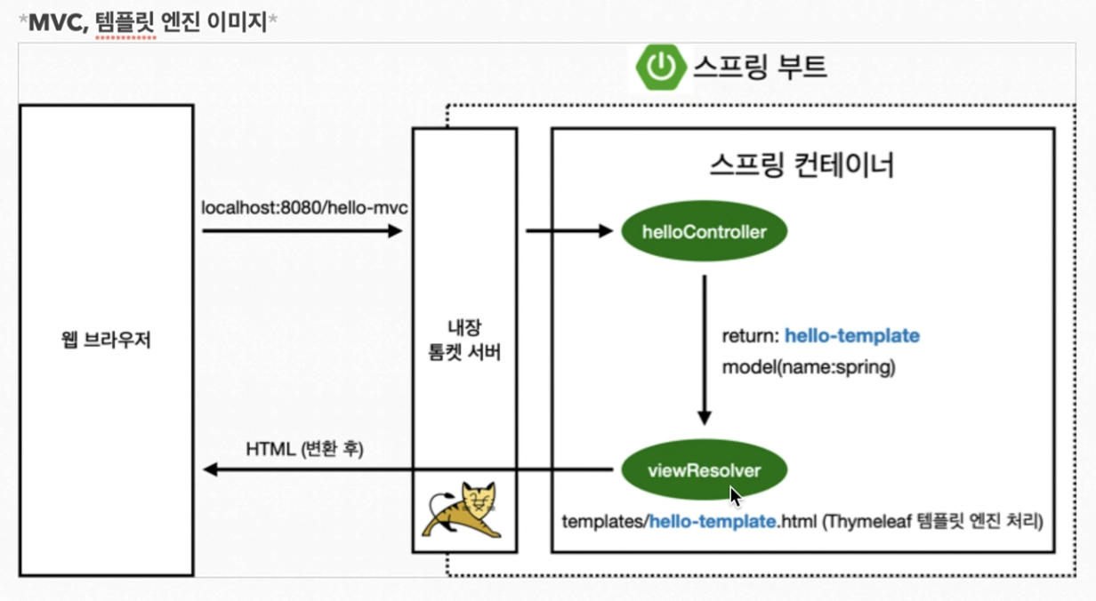 Controller에서 return값으로 문자를 반환하면 viewResolver가 화면을 찾아서 처리함.
