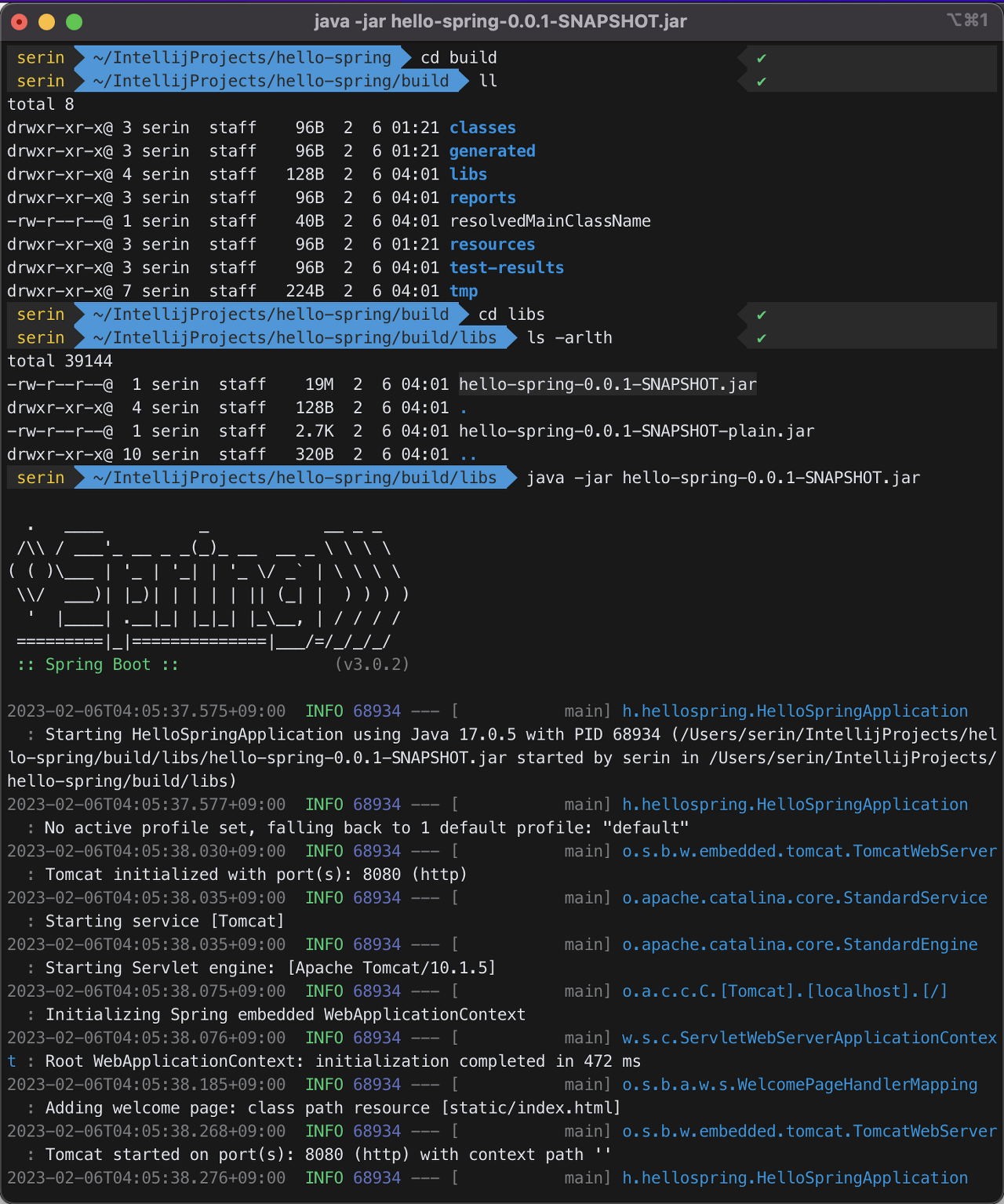 java -jar hello-spring-0.0.1-SNAPSHOT.jar 해서 실행시키면 된다!