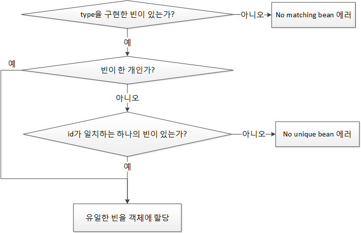 XML 파일에서 bean의 id가 일치하는 것을 찾아서 매칭시킨다.