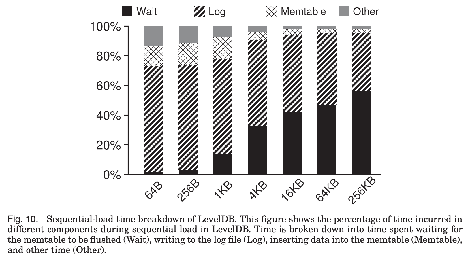 value size가 작은 경우 write의 비효율성으로 인해 LSM-tree log에 기록하는 시간이 오래 걸리고(Fig. 8),
