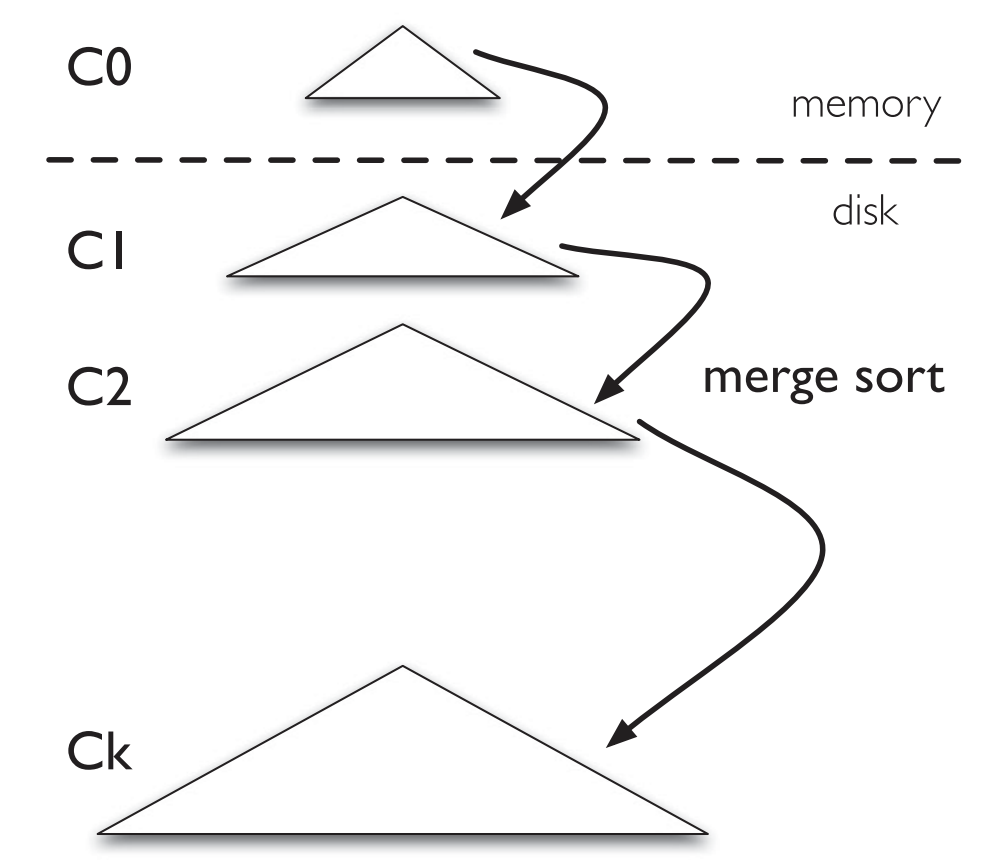 C0가 다 차면 Disk상의 C1으로 내리는데 merge sort와 유사한 방식으로 이루어진다.