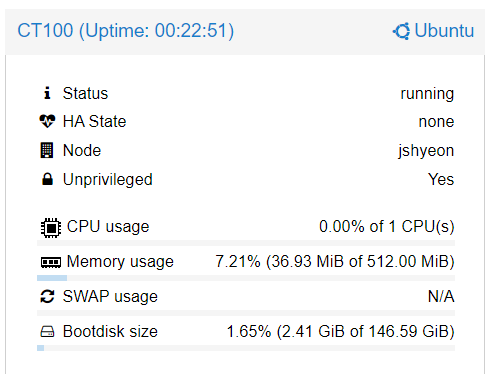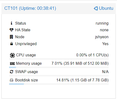 먼저 컨테이너를 하나 생성한다. 나는 이 사양 정도로 진행을 해봤다.