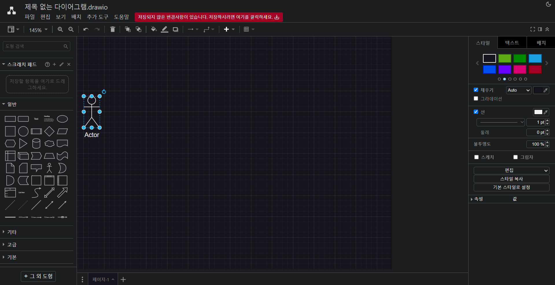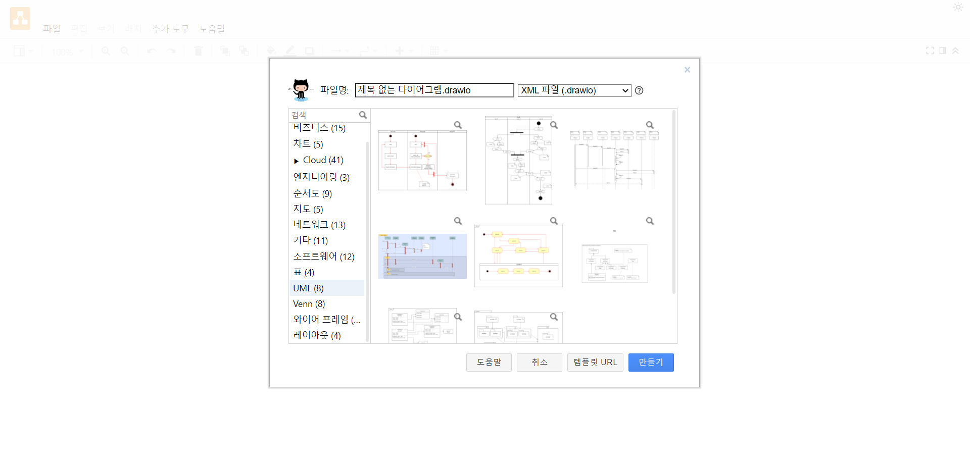 저장위치를 클릭하고 새 다이어그램 만들기를 클릭하면 템플릿을 선택할 수 있다.